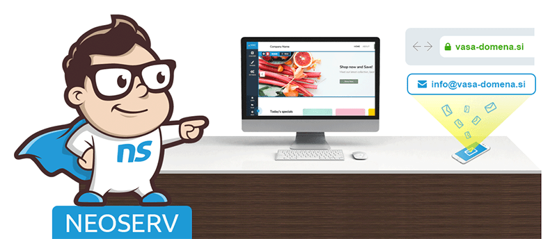 Enostavna postavitev spletne strani z NEOSERV STUDIO na lastni domeni in e-poštnim naslovom.